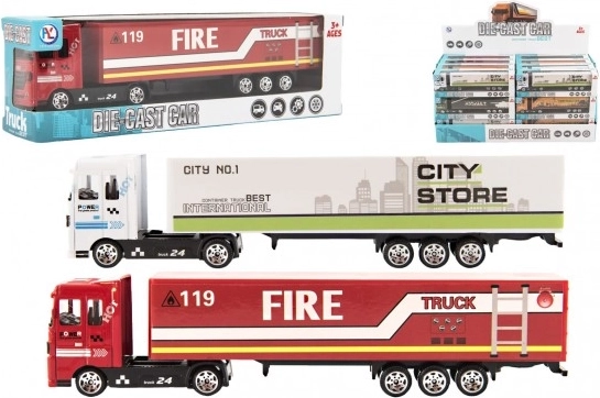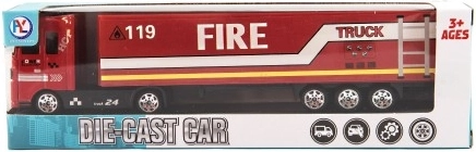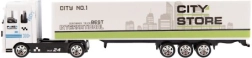 Denne detaljerede lastbil med påhængsvogn kombinerer et metalførerhus og lette plastdele for både nem håndtering og god holdbarhed under leg. Takket være friløb sætter den i gang på glatte overflader og passer perfekt i enhver samling af legebiler.