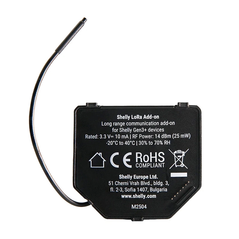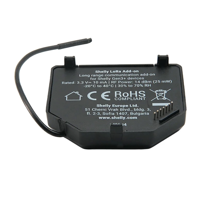 Det ekstra relæ Shelly LoRa er designet til pålidelig kommunikation over lange afstande, hvilket gør det ideelt til miljøer med begrænset internet- eller Wi-Fi-adgang. Understøtter EU868-båndet og kan fungere på afstande op til 5 km, hvilket er mere end traditionelle automatiseringssystemer.