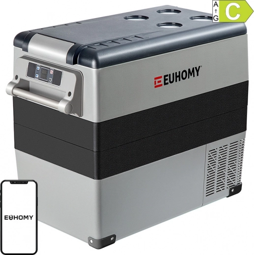 Oplev bekvemmeligheden med det bærbare bilkøleskab Euhomy, som kombinerer et klassisk køleskab og en fryser i én enhed. Indstil temperaturen fra -20 °C til +20 °C efter dine behov: køl drikkevarer eller frys madvarer.