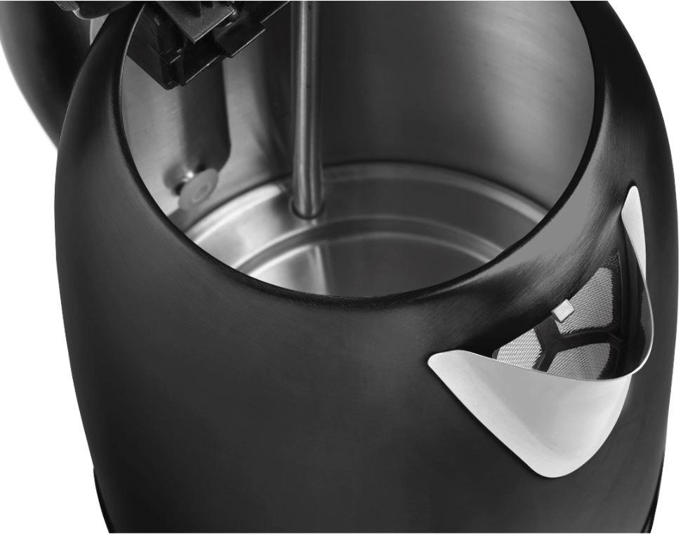 Kedlen er designet til at være så enkel at bruge som muligt. Den specielle tud gør det let at hælde vand, og knappen i låget gør hurtig åbning nem. Den brede krop er let at rengøre, og det aftagelige filter forhindrer kalkaflejringer.