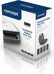 Den multifunktionelle toaster 4-i-1 fra Concept gør det hurtigt og nemt at tilberede lækre morgenmåltider, mellemmåltider og aftensmad. Udstyret med fire udskiftelige XXL-plader, ideelle til sprøde toasts, duftende vafler eller grillede specialiteter.