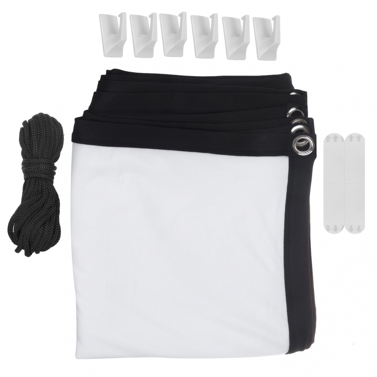 Skærmen har dimensioner 177x99cm og er velegnet til formatet 16:9, hvilket sikrer stor kompatibilitet med de fleste projektorer.