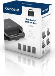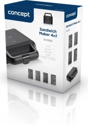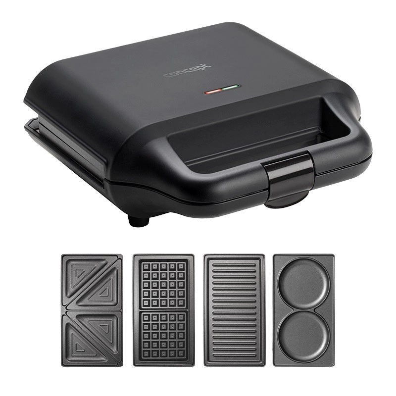 Sandwichtoaster 4-i-1 i et elegant sort design fra Concept er en praktisk hjælper til hurtig madlavning. Med den kan du lave: