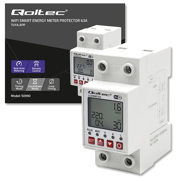 - Præcise energimålinger med en nøjagtighed på 2%, rækkevidde 0-999999 kWh