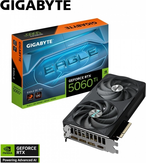 Grafikkortet Gigabyte GeForce RTX 5060 Ti Eagle OC er et førsteklasses valg for gamere og grafiske designere, der søger den bedste grafiske ydeevne. Det er baseret på NVIDIA Blackwell-arkitekturen og udnytter DLSS 4-teknologi.