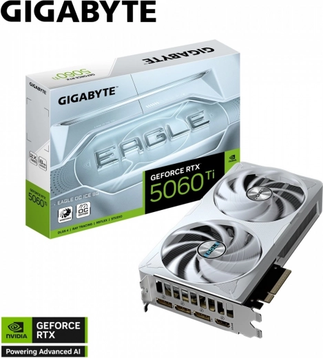 Mød grafikkortet GeForce RTX 5060 Ti Eagle OC Ice 8G, som kombinerer de mest moderne teknologier for den bedste spiloplevelse. Det er udstyret med 8 GB GDDR7-hukommelse med en 128-bit bus, hvilket sikrer høj hastighed og effektiv billedbehandling.
