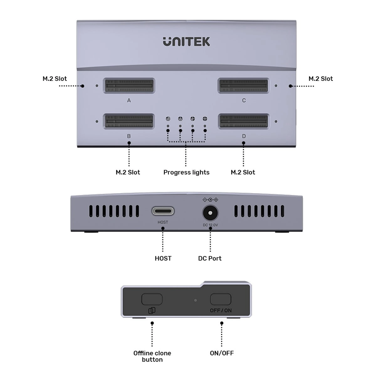 Ultrahurtig USB4-forbindelse leverer båndbredde op til 40 Gb/s til lynhurtig kopiering og arbejde med store filer som 4K/8K-video eller RAW-fotos. Stationen muliggør samtidig tilslutning og håndtering af op til fire M.2-diske og tilbyder maksimal fleksibilitet uanset SSD-type takket være understøttelse af NVMe og SATA.