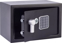 - Sejfen er udstyret med tidsblokering efter tre forkerte kodeindtastninger – ideelt til at minimere forsøg på brud.