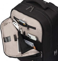 Det beskyttende laptoprum med central V-formet støtte sikrer, at enheden forbliver sikkert på plads og optimalt positioneret. Det forreste rum med organiserede lommer holder tilbehør og nødvendigheder på plads, mens den ergonomiske, åndbare rygpolstring giver komfort hele dagen.