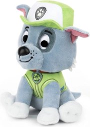 Plysefiguren Rocky har sine karakteristiske detaljer: grøn vest, kasket med emblem og et venligt udtryk. Den bløde overflade indbyder til kram hele dagen og hjælper med rolig sengetid om aftenen. En skøn gave til ethvert barn, der elsker PAW PATROL.