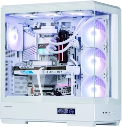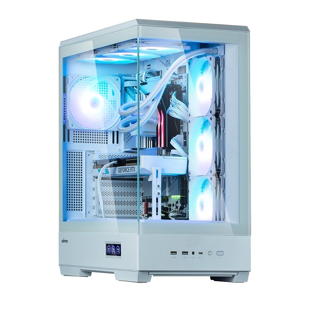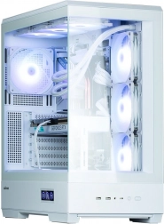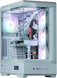 Oplev det udvidede hvide PC-kabinet, der bringer et moderne og rent design til dit skrivebord. Udstyret med to rammeløse paneler af hærdet glas giver det en unik udsigt til din opsætning.