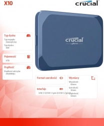 Crucial X10 er en kraftfuld og pålidelig ekstern SSD til lagring og arbejde med store filer – fra fotos og videoer til spil og backups. Takket være læsehastighed op til 2100 MB/s kan du redigere projekter direkte fra disken og accelerere dit workflow. Den matblå krop ser elegant ud og ligger samtidig godt i hånden.