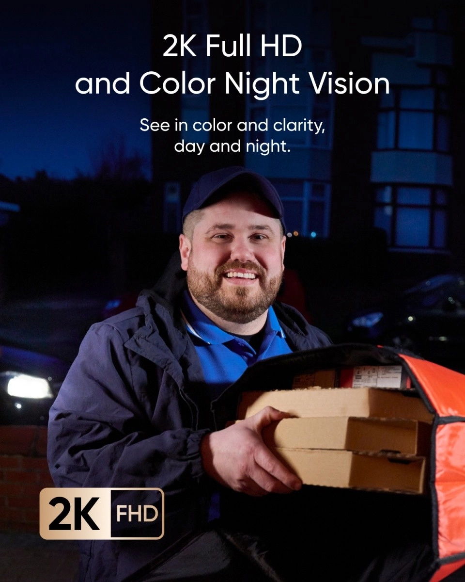 Fang vigtige detaljer i 2K Full HD-opløsning, med mulighed for batteri- eller kabelforsyning efter dine præferencer. Dørklokken kan forbindes med et eksisterende system til alarmeringsmeddelelser.
