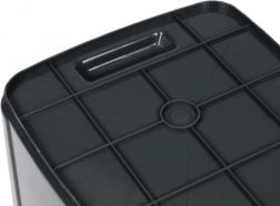 Håndtaget fungerer også som en holder til toiletpapir, og en speciel rille letter tømning af beholderen.