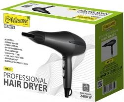 Hårtørrer Maestro 2400W er designet til at opfylde dine daglige behov i hårplejen. Med denne enhed får du en kraftig og stabil luftstrøm, som klarer enhver hårlængde og -tykkelse.