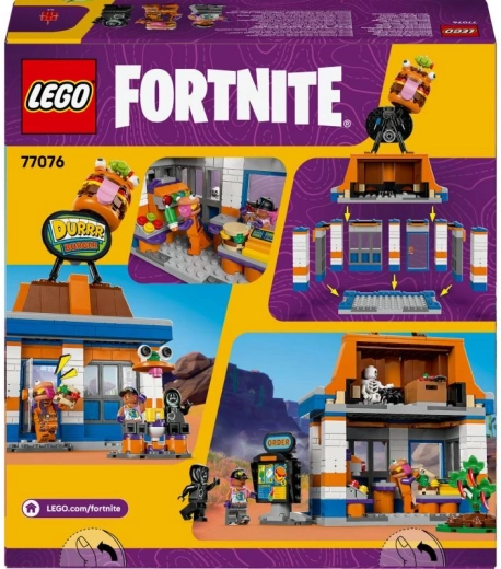 LEGO Fortnite Durrr Burger Restaurant er et kreativt byggesæt til børn fra 10 år, der bringer det ikoniske sted fra spillet FORTNITE ind i den virkelige verden. Den modulære konstruktion, masser af tilbehør, fire minifigurer og et bonus-outfit i spillet efter scanning af QR-kode sikrer timevis af leg og fantasi.