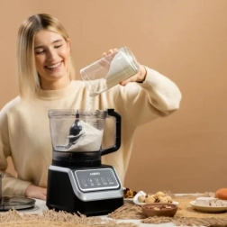 Køkkenrobotten MRK-27 med en imponerende ydelse på 2000 W er en sand kæmpe i dit køkken! Høj ydelse sikrer pålidelighed, hastighed og præcision, selv ved tunge opgaver såsom formaling af kød til hjemmeburgere, knusning af hårde nødder til desserter eller formaling af kaffe til frisk aroma.