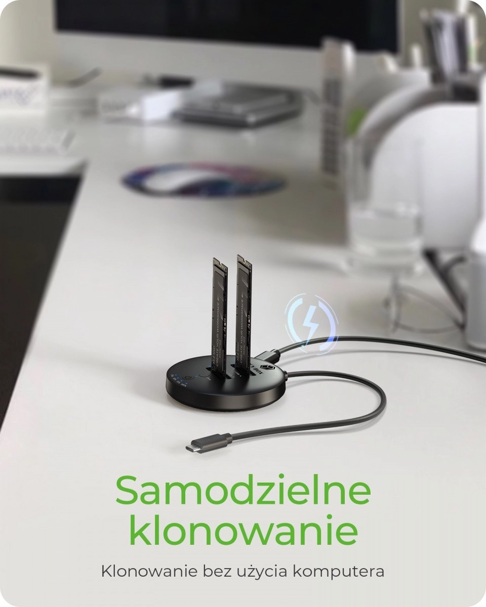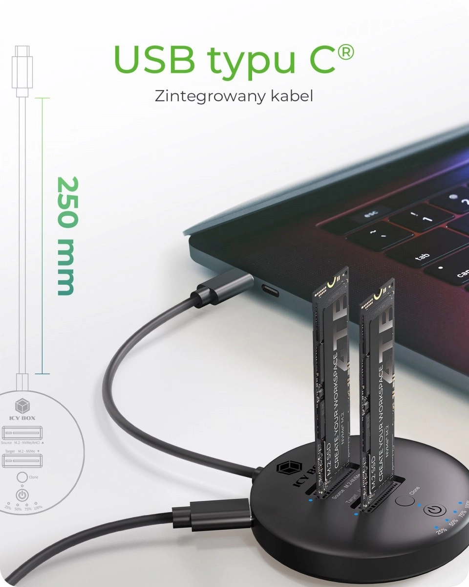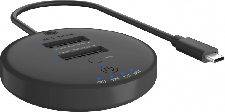 Stationen IB-1612MCL-C31 giver dig mulighed for selvstændig kloning af drev uden behov for tilslutning til en computer. Du kan nemt duplikere et helt M.2 NVMe SSD-drev for hurtig systemmigration. LED-indikatorer viser tydeligt kloningsforløbet.