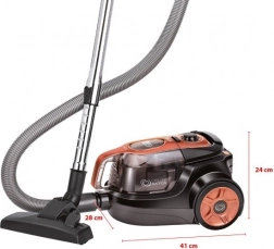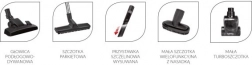 Cyklonstøvsugeren er udstyret med et specielt CYCLONE SUCTION-kammer, der skaber cykloner, som adskiller støvpartikler fra den strømmende luft. Enheden omfatter også et skumfilter, et keglefilter og to HEPA 13-filtre, som opfanger 99,98 % af urenhederne. Efter rengøring er det nok at tømme støvbeholderen med en kapacitet på 1,1 liter.