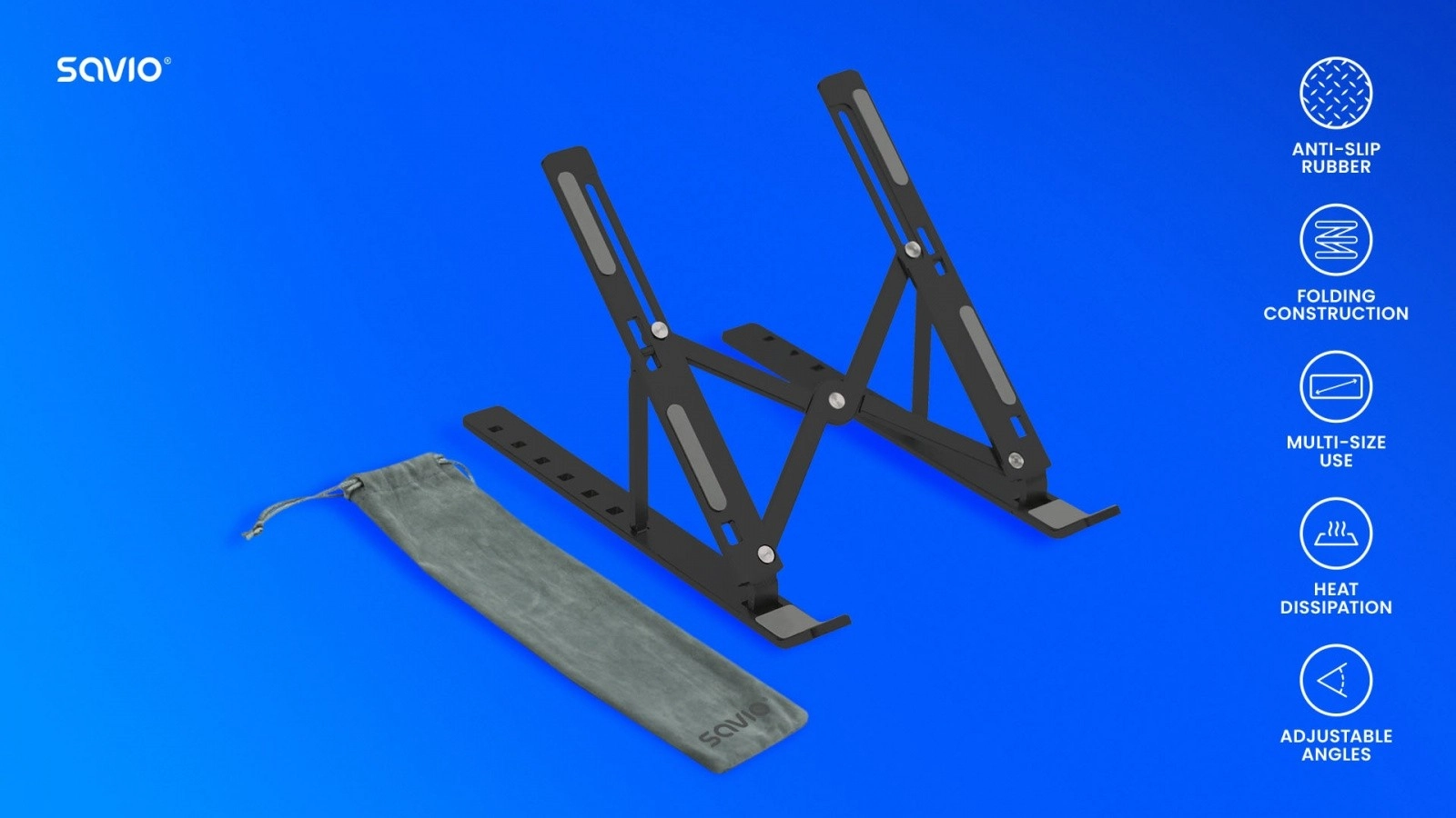 Forbedret ventilation: Det åbne design sikrer fri luftgennemstrømning, hvilket bidrager til bedre ventilation af enheden. Den bærbare computer eller tablet kører dermed mere stabilt og er bedre beskyttet mod overophedning under intensiv brug.
