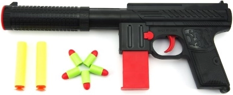 Designet med aftagelig lyddæmper og rødt magasin stimulerer fantasien og giver legen et autentisk præg uden at gå på kompromis med sikkerheden.
