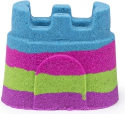 Varianten Mini Regnbueslot indeholder 140 g sand i fire farver (blå, grøn, lilla, lyserød). Bægeret formet som et slot fungerer både som byggeform og som praktisk opbevaring – efter leg lægger du blot sandet indeni, så er det klar til mere skaben.
