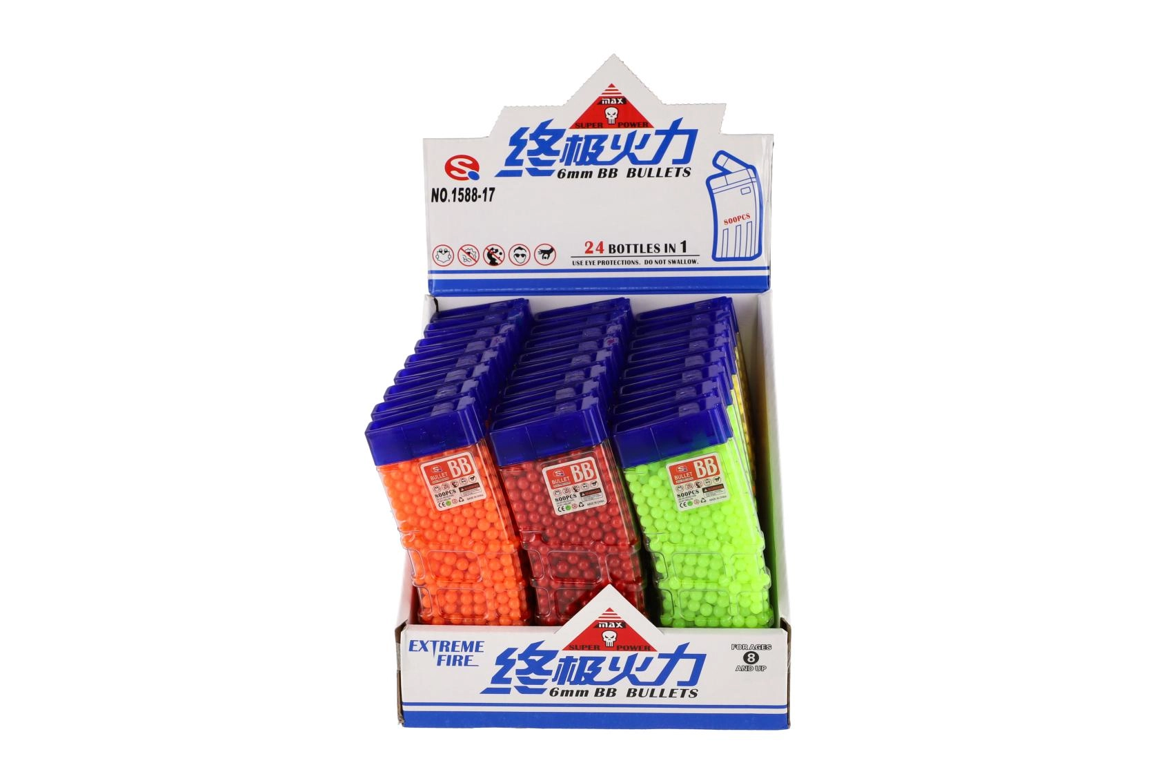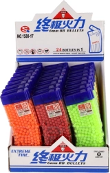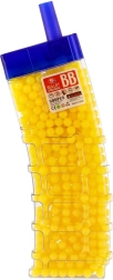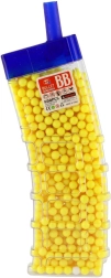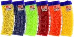 Dette alsidige sæt med 6 mm kugler giver rigeligt med ammunition til lang tids leg. Farvevarianten (gul, blå, grøn, rød, orange m.fl.) øger overblikket og fornøjelsen under legen. Den gennemsigtige plastbeholder med praktisk påfyldningstut gør det let at fylde legetøj og beskytter samtidig indholdet mod spild.