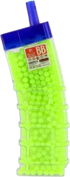 Takket være de kompakte mål passer beholderen nemt i rygsæk eller lomme, så børn altid har kuglerne ved hånden. Den glatte overflade og ensartede størrelse understøtter jævn fremføring i kompatibelt legetøj. Velegnet til legetøjspistoler med kugler og andet legetøj, der bruger plast-BB-kugler med en diameter på ca. 6 mm.