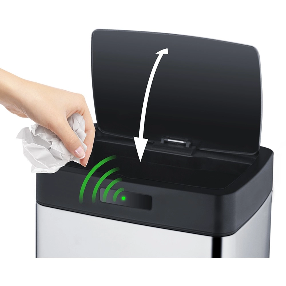 Berøringsfri affaldsspand i rustfrit stål tilbyder nem betjening og et elegant design, fremstillet af materialer i høj kvalitet. Den er udstyret med fotoelektrisk teknologi for automatisk og hygiejnisk åbning uden berøring.