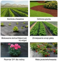Dette kvalitets agrotextil er ideelt til at beskytte planter og jord mod ukrudt uden behov for kemiske midler. Takket være dets egenskaber holder det på fugten i jorden og forbedrer dens varmebalance, hvilket fremskynder væksten af dine planter.