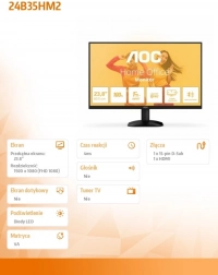 Fordyb dig i en brillant visuel oplevelse med skærmen 24B35HM2, som tilbyder en 24-tommers VA-skærm og en opdateringsfrekvens på 100 Hz. Med HDMI- og VGA-porte er den klar til enhver tilslutning.