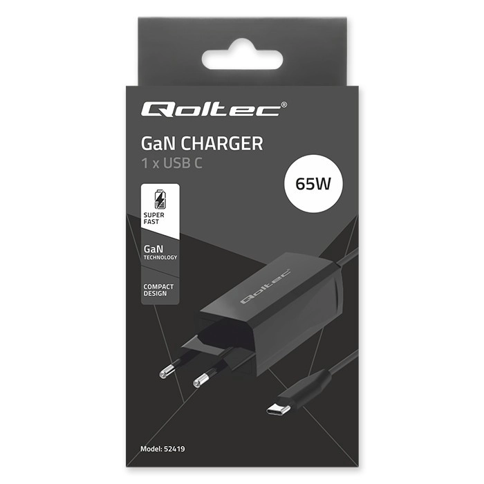 Qoltec-opladeren bruger avanceret GaN-teknologi (galliumnitrid), som overgår traditionel silicium i energieffektivitet. Den leverer maksimal ydeevne med minimale varmeafledninger.