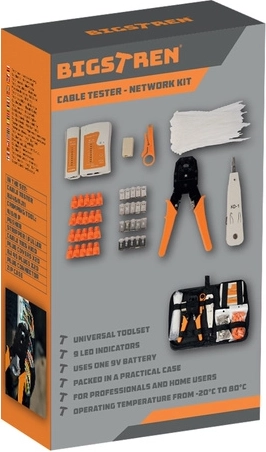 Dette universelle netværkssæt tager sig af alle dine behov, når du arbejder med kabler. Det indeholder en tester, der arbejder med forskellige typer kabler, som understøtter både Ethernet og telefonkabler, hvilket gør det til en alsidig 2 i 1 løsning. Værktøjerne er ergonomiske og klar til brug, så du kan begynde installation eller reparation med det samme.