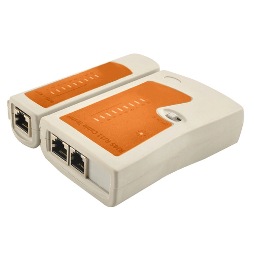 Testeren er kompatibel med forskellige kabeltyper, herunder RJ45 og RJ11, hvilket muliggør test af Ethernet- og telefonkabler.