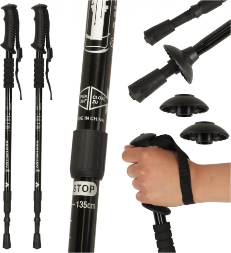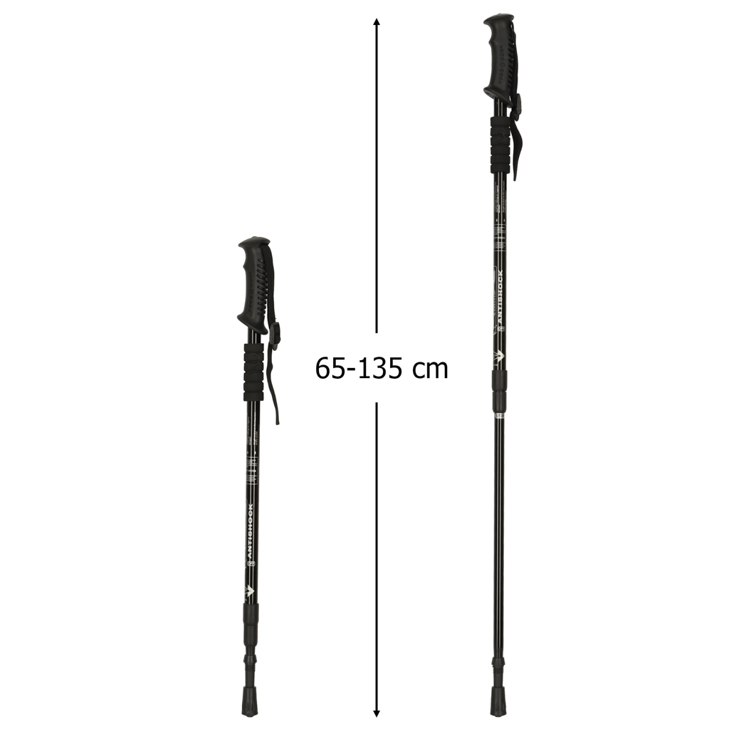 Stængerne har en justerbar længde fra 65 til 135 cm, hvilket gør dem ideelle til forskellige terrænforhold.