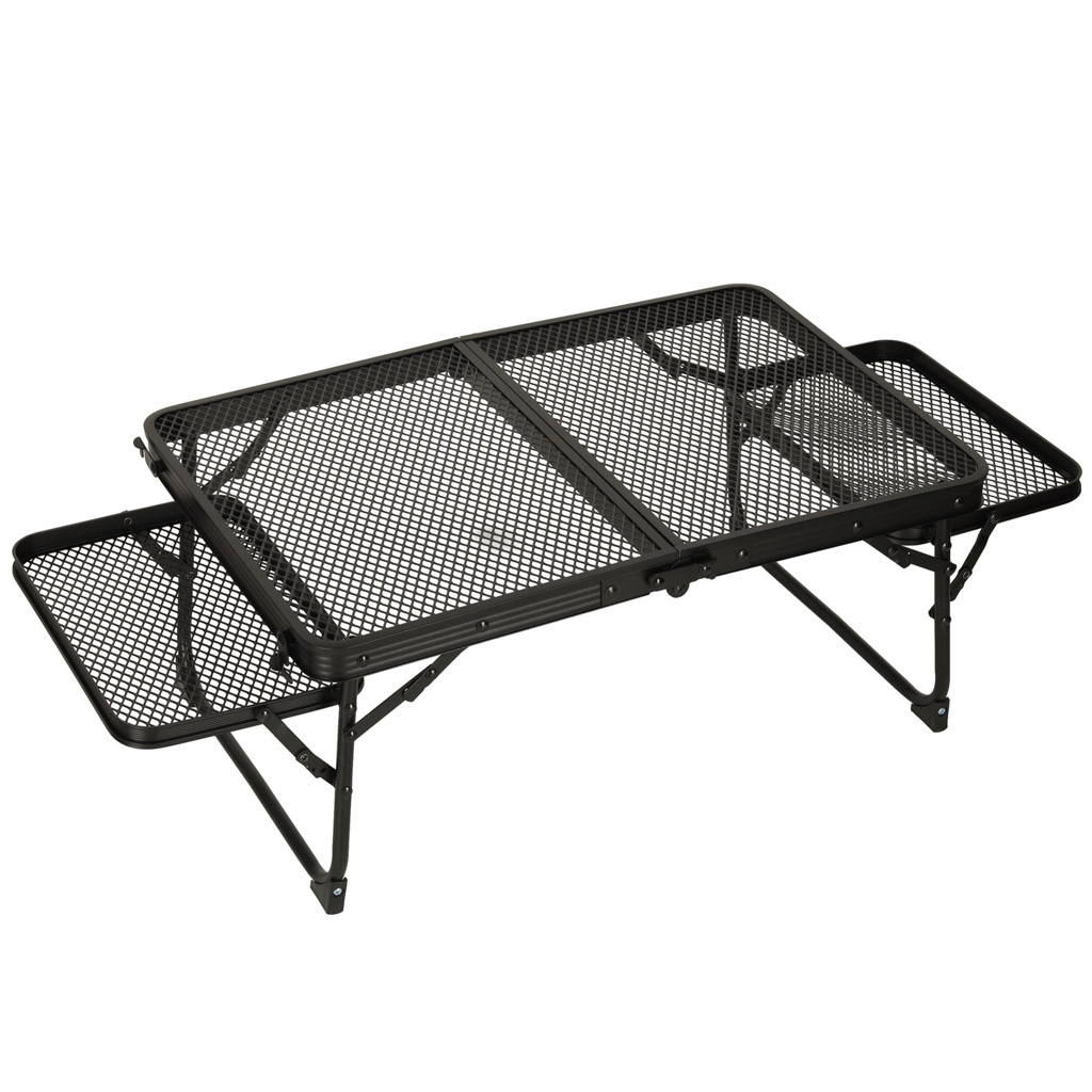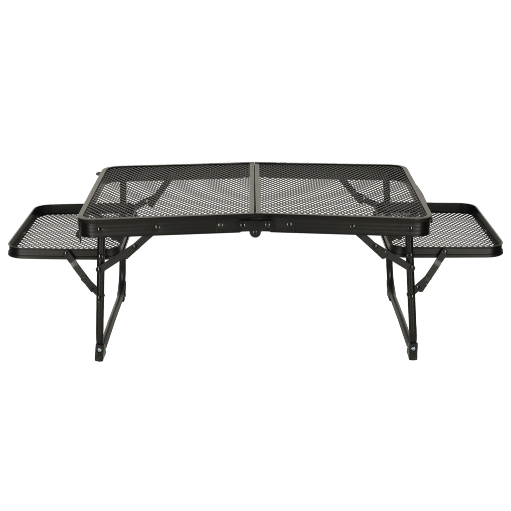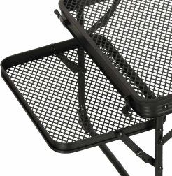 Bordet kan let foldes ud med det intuitive sammenklappede system, hvilket gør det hurtigt at gøre klart til brug uden værktøjer. Desuden sikrer anti-tilt låsningen stabilitet, selv på ujævne overflader, og med skridsikre fødder kan du være sikker på, at det forbliver stabilt.