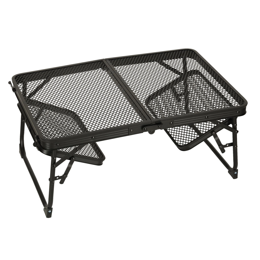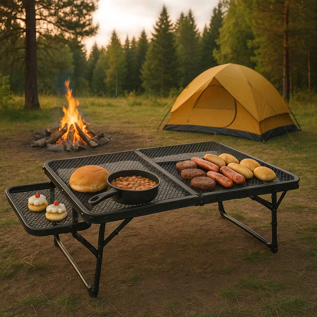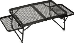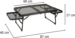 Dette sammenklappelige campingbord er ideelt for dem, der søger en multifunktionel og praktisk løsning til udendørs aktiviteter. Fremstillet med en aluminiumskonstruktion, bordet er rustfrit og dets metalgitteroverflade giver fremragende ventilation og holdbarhed. Takket være sin lave vægt kan du nemt tage det med og opbevare det, hvilket er perfekt til brug ved camping, picnic eller i haven.