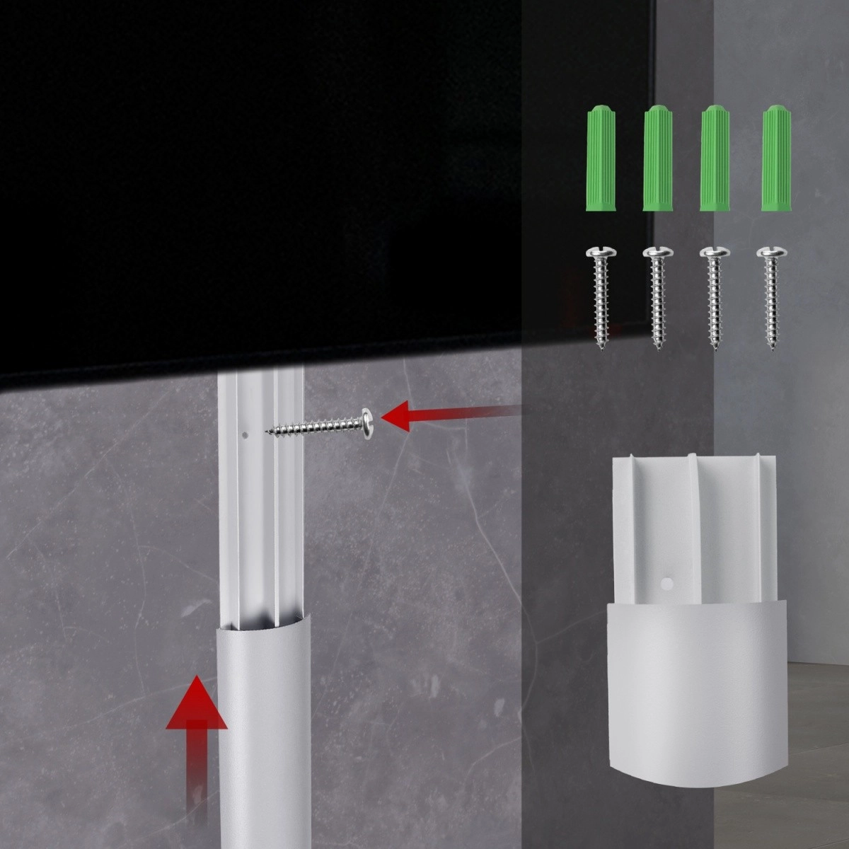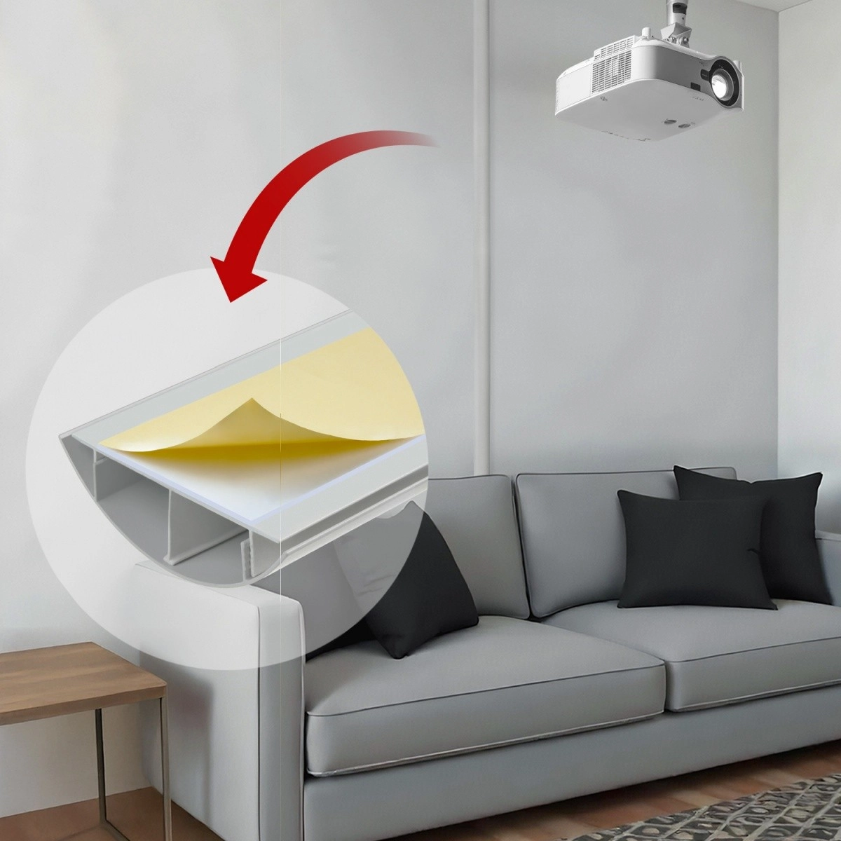 Består af to dele: en monteringsbase og et dæksel, som giver hurtig adgang til kablerne for udskiftning eller vedligeholdelse. Installationen er nem og ikke-invasiv med den selvklæbende tape; alternativt kan de medfølgende rawlplugs og skruer bruges for øget stabilitet.