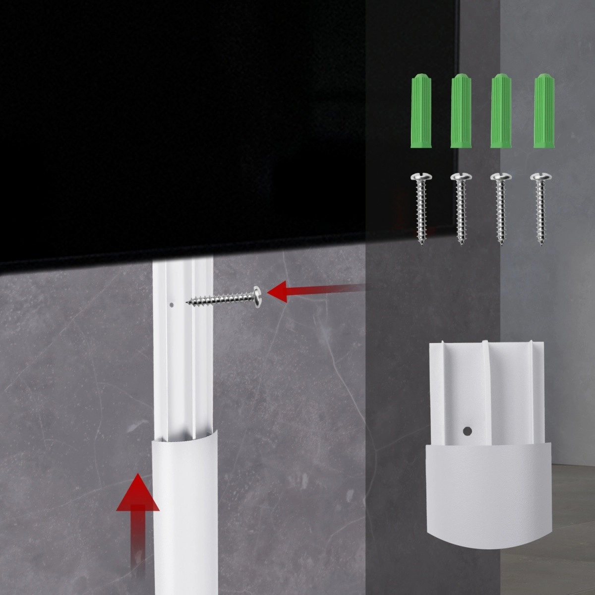 Kanalen er todelt – den består af en monteringsbase og et dæksel, hvilket giver hurtig og nem adgang til kablerne for udskiftning eller vedligeholdelse. Installationsmulighederne omfatter selvklæbende tape til hurtig og enkel fastgørelse på glatte overflader eller brug af monteringsskruer og rawlplugs for øget stabilitet.