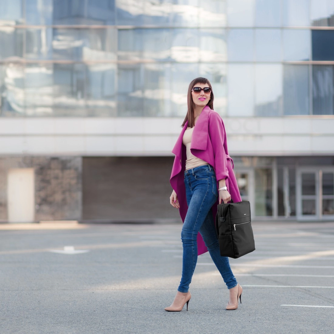 Rygsækken er fremstillet af slidstærkt tekstilmateriale med metalaccenter på lynlåsen, hvilket garanterer lang levetid og pålidelighed.