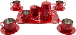 Vi præsenterer det røde metallsæt af teservice, som vil fange ethvert te-elskers opmærksomhed. Dette 14-delt sæt er designet med omtanke for børns sikkerhed og sjov fra 3 år. Det er fremstillet af metal, hvilket giver holdbarhed og modstandsdygtighed mod korrosion.