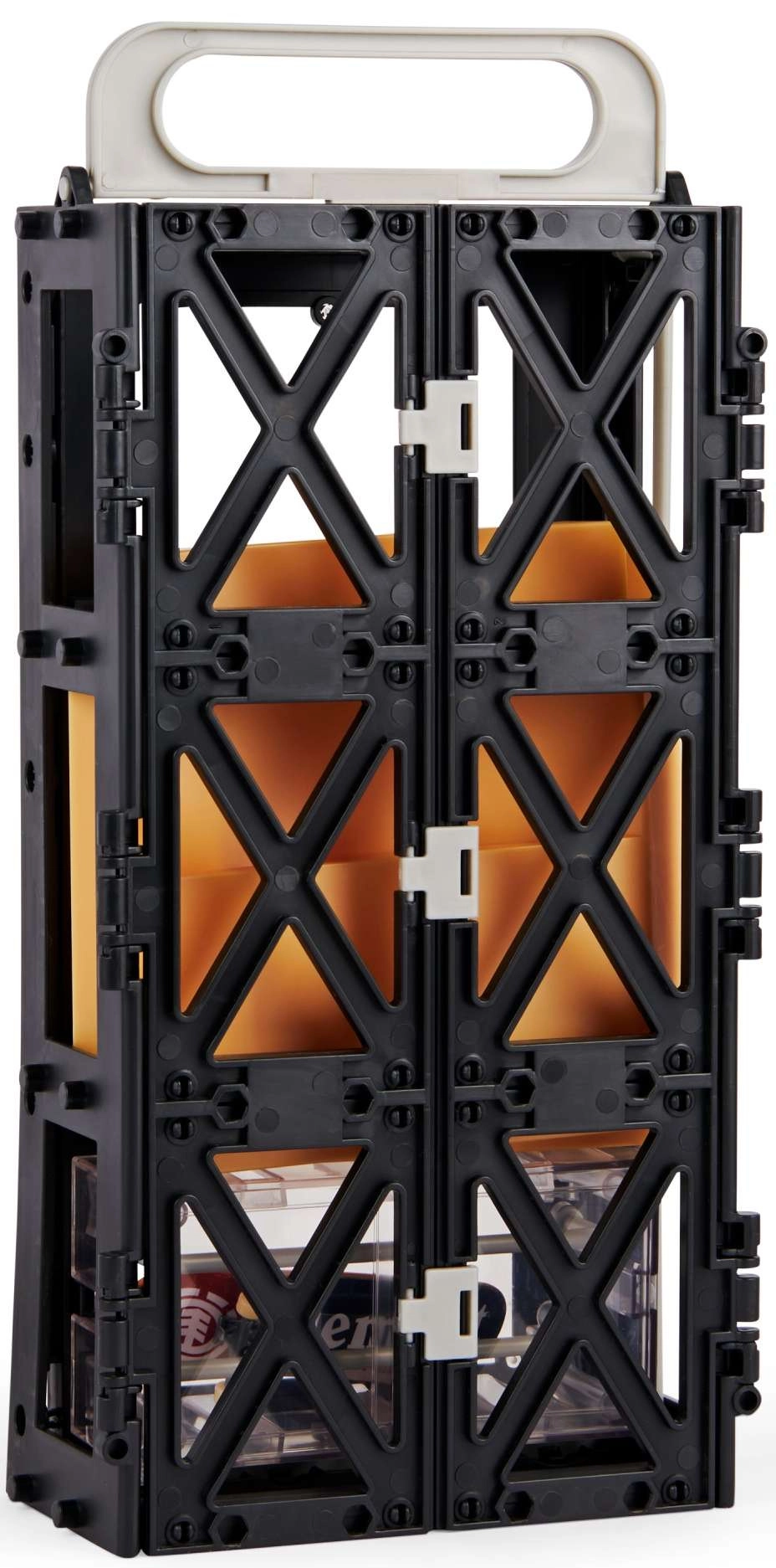 Tech Deck Play and Display er en smart 2-i-1-løsning: stander og opbevaringsetui til din samling og en komplet fingerboard-skatepark til tricks. Kassekonstruktionen foldes nemt ud til en funbox med ramper og grind rails, så du kan køre både hjemme og på farten. Sættet inkluderer også et stilfuldt ELEMENT fingerboard til øjeblikkelig kørsel.