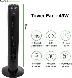 Moderne og stabil konstruktion med en højde på 82 cm gør det muligt at placere ventilatoren både i hjemmet og på kontoret uden at optage meget plads. Bred base sikrer stabilitet af enheden.