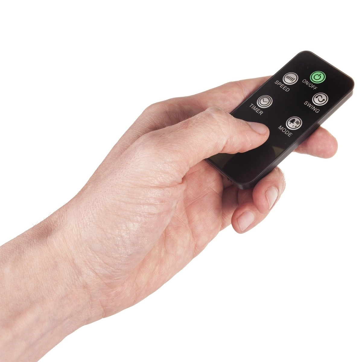 Ventilatoren kan styres med fjernbetjening eller via panelet på enhedens øvre del. Ventilatoren tilbyder tre driftsindstillinger: Normal tilstand i henhold til hastighedsindstillingen, Naturlig tilstand, der simulerer en naturlig brise, og Sovetilstand for en rolig natdrift.