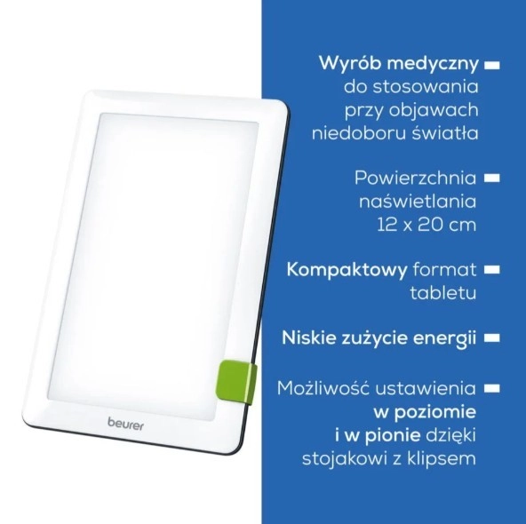 Især i vintermånederne føler mange mennesker mangel på balance eller energi på grund af begrænset dagslys. Beurer TL 30 lysterapi-lampe modvirker effektivt disse symptomer og forbedrer dit velbefindende på grå dage ved at simulere dagslys.