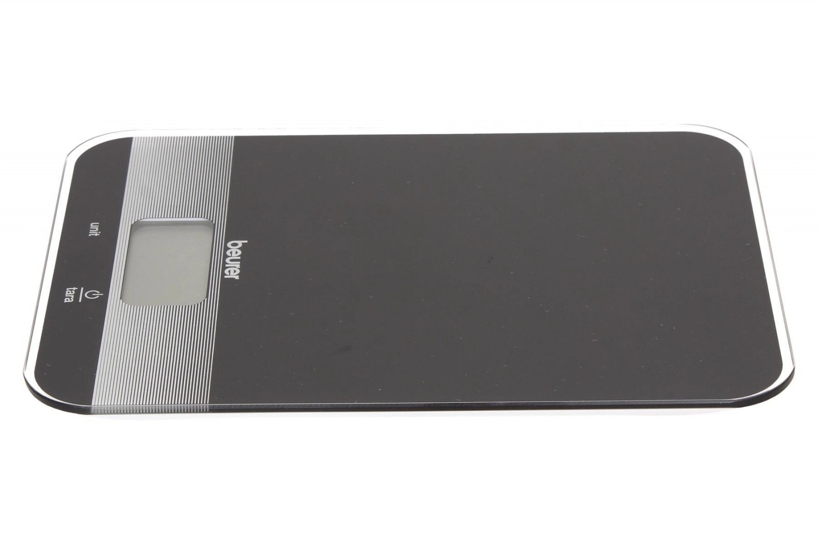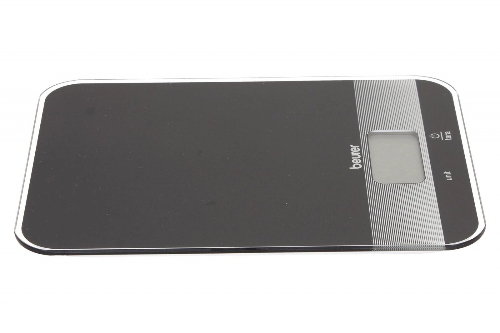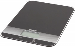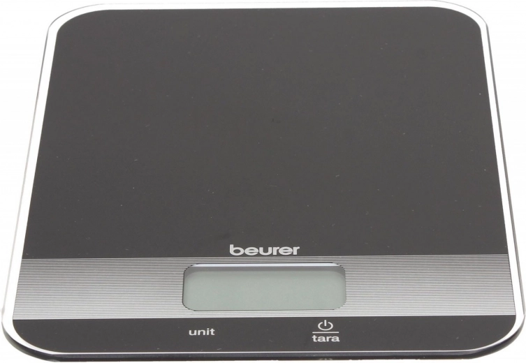 Beurer køkkenvægt i elegant sort er udstyret med en praktisk tara-funktion og et letlæseligt LCD-display. Glasoverfladen giver et moderne look og er nem at rengøre.