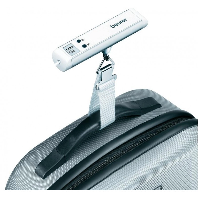 Rejsevægten, ideel for enhver flyrejsende, hjælper med at undgå gebyrer for overvægtig bagage. Med den kan du nemt måle vægten, og takket være den praktiske lygtefunktion er den fremragende at bruge selv under dårlige lysforhold. Vægten giver automatisk stop med akustisk signal for nem betjening.