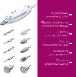 Manicure-/pedicuresættet Beurer MP62 med ti højtkvalitets tilbehørsdele og LED-lys er den ideelle løsning til perfekt neglepleje som hos en professionel.