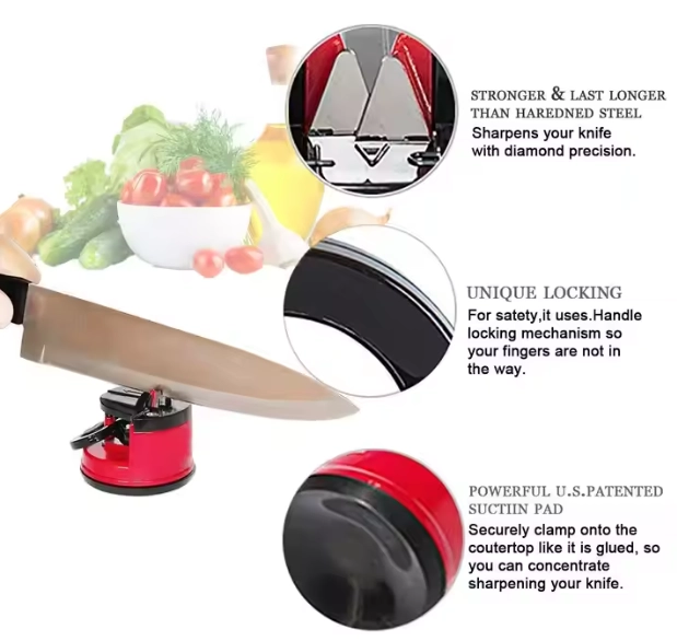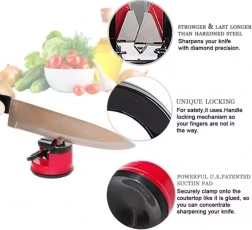 Ergonomisk håndtag gør det nemt at fastlåse enheden på en glat overflade. Tryk blot på håndtaget for at aktivere sugekoppen, og træk derefter bladet flere gange for hurtig og effektiv vedligeholdelse af dine værktøjer.