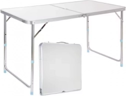 Det sammenfoldelige campingbord folder hurtigt ud og efter sammenfoldning bliver det til en kompakt kuffert med et bekvemt h0e5ndtag, hvilket g00f8r opbevaring og transport nem. Den store bordplade m0e5ler 120 x 60 cm og giver rigelig plads til mad, drikkevarer eller spil. H0f8jdejusterbare ben g00f8r det muligt at tilpasse bordet til forskellige forhold og brugeres pr0e6ferencer.